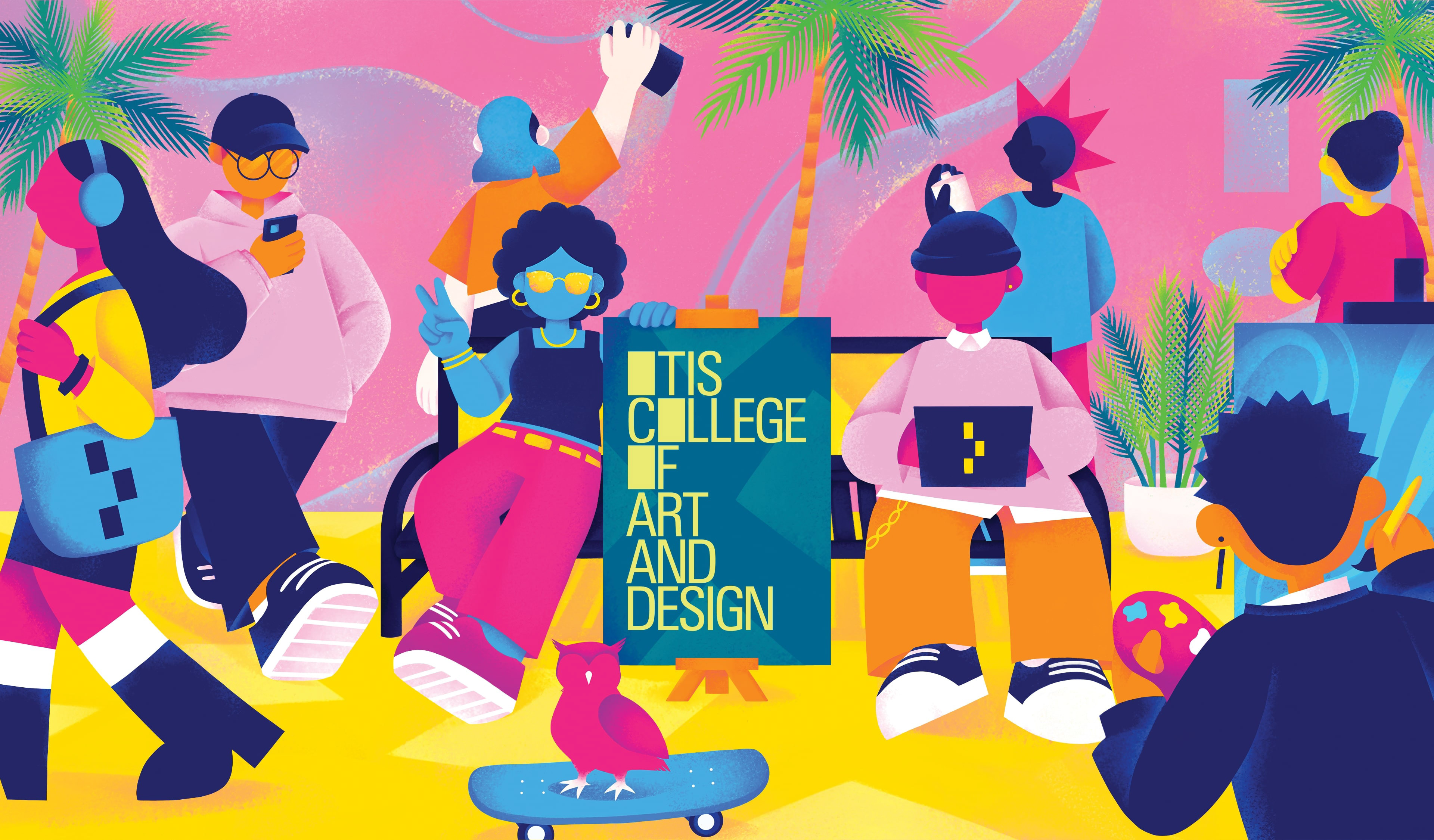 Viewbook illustration for Otis College of Art and Design, inspired by the creative diversity in LA.