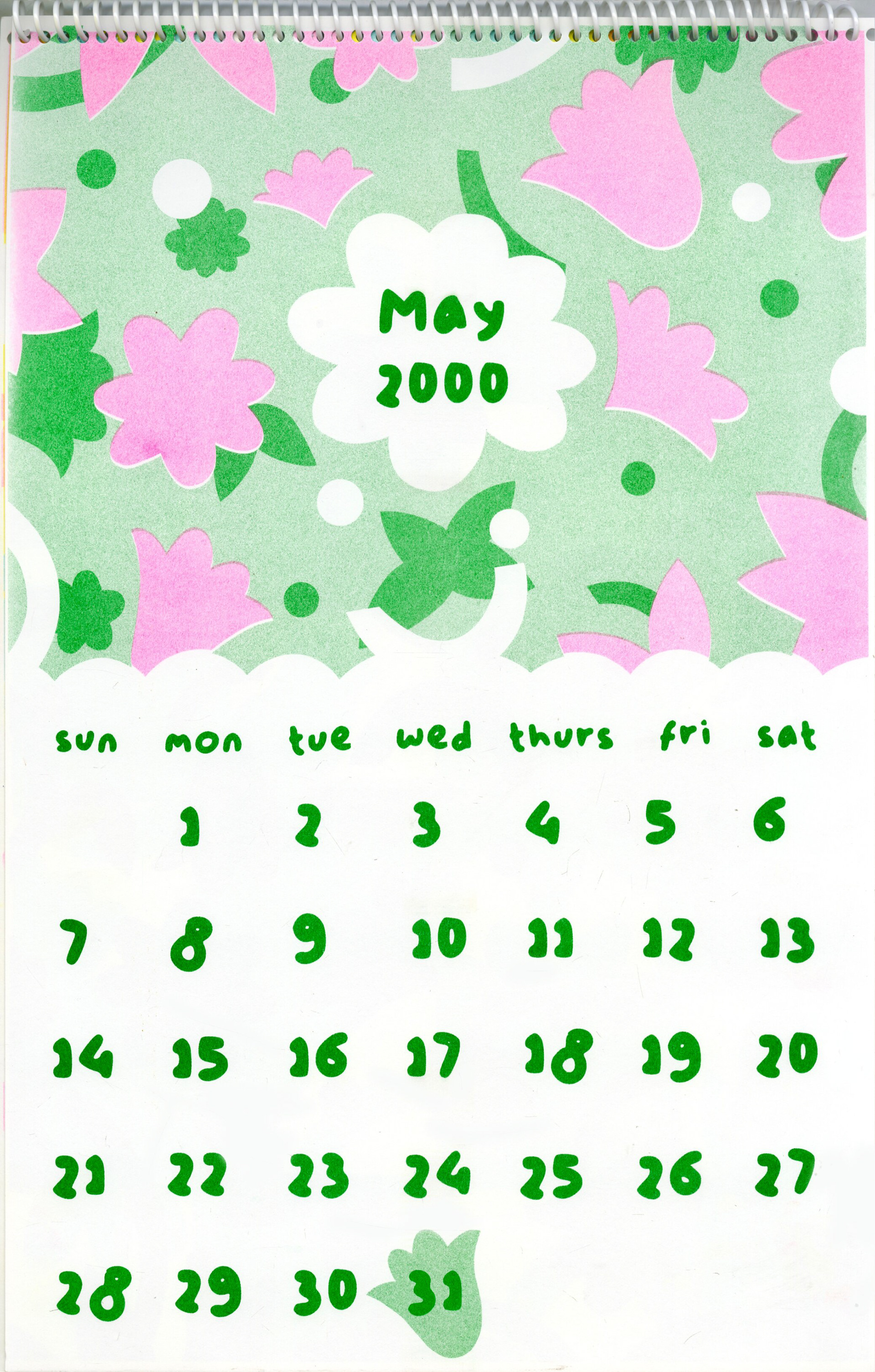 A riso-printed calendar comprised only of the birth months of my sisters and me.