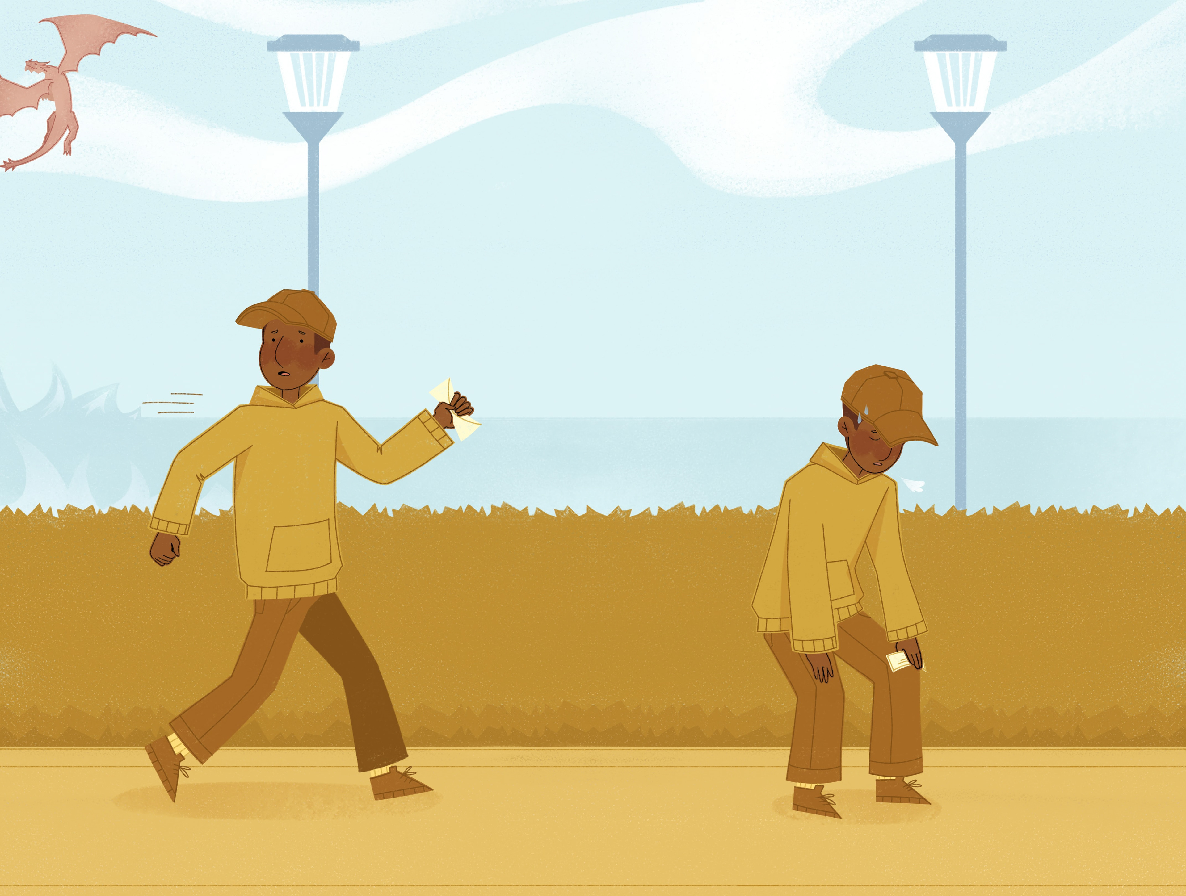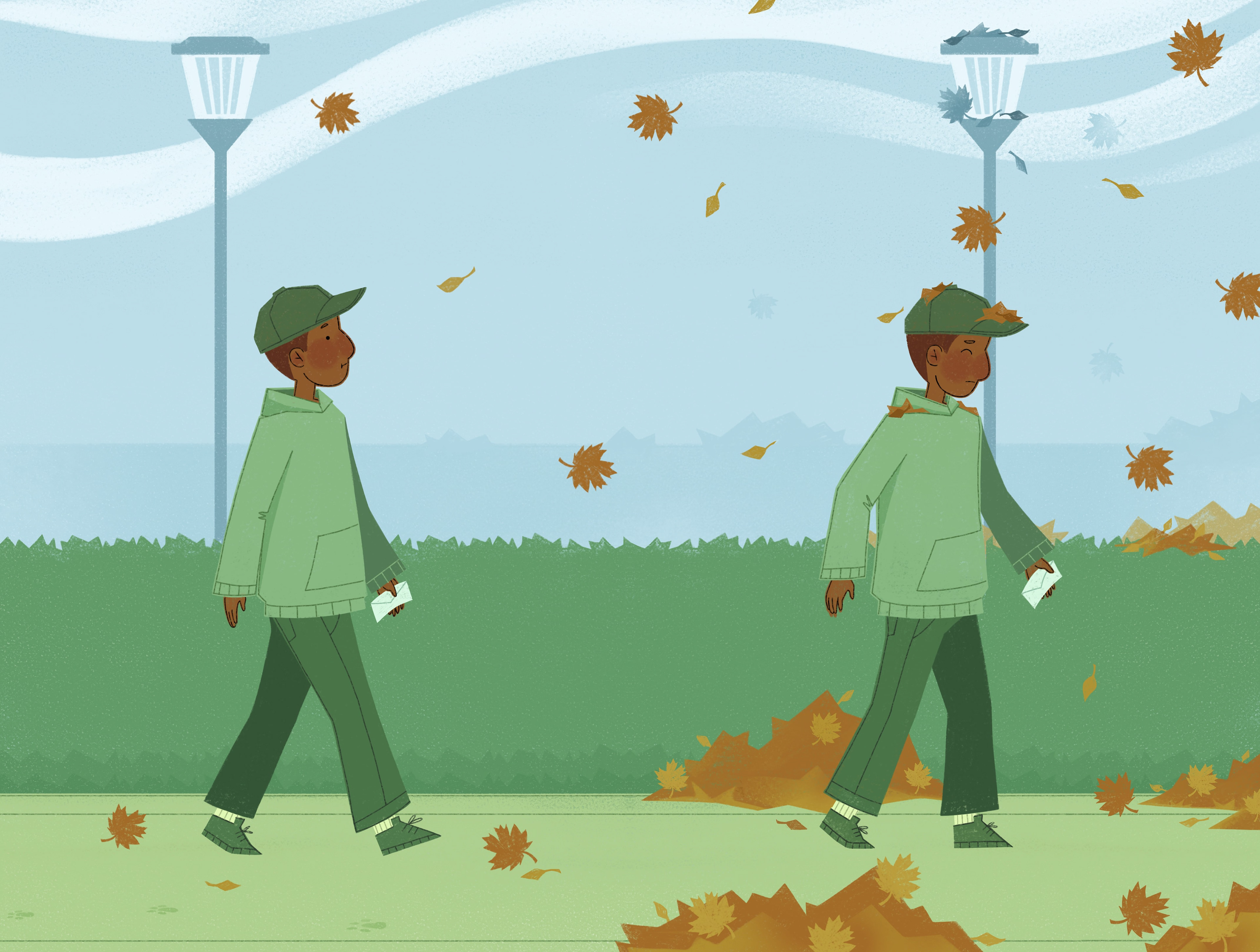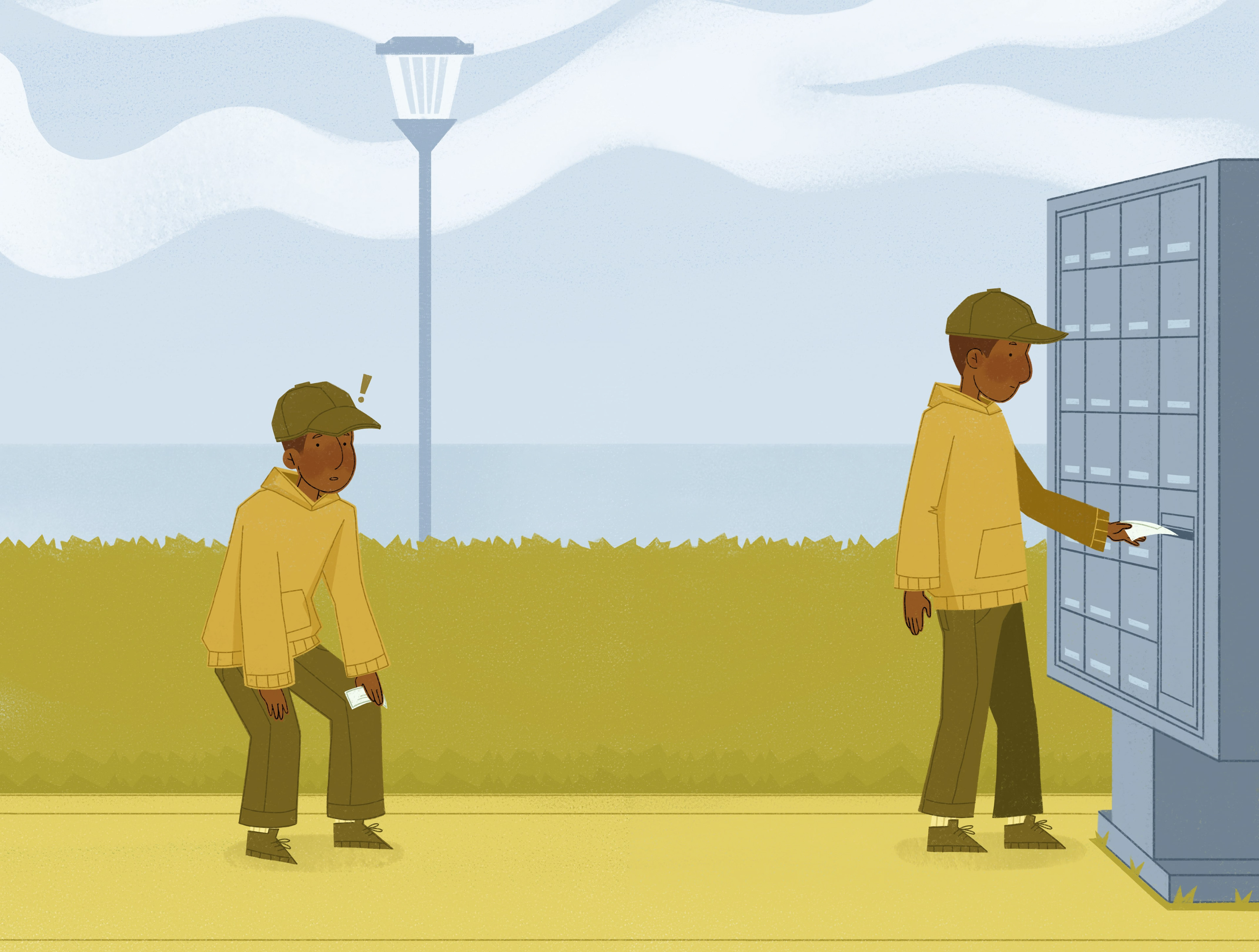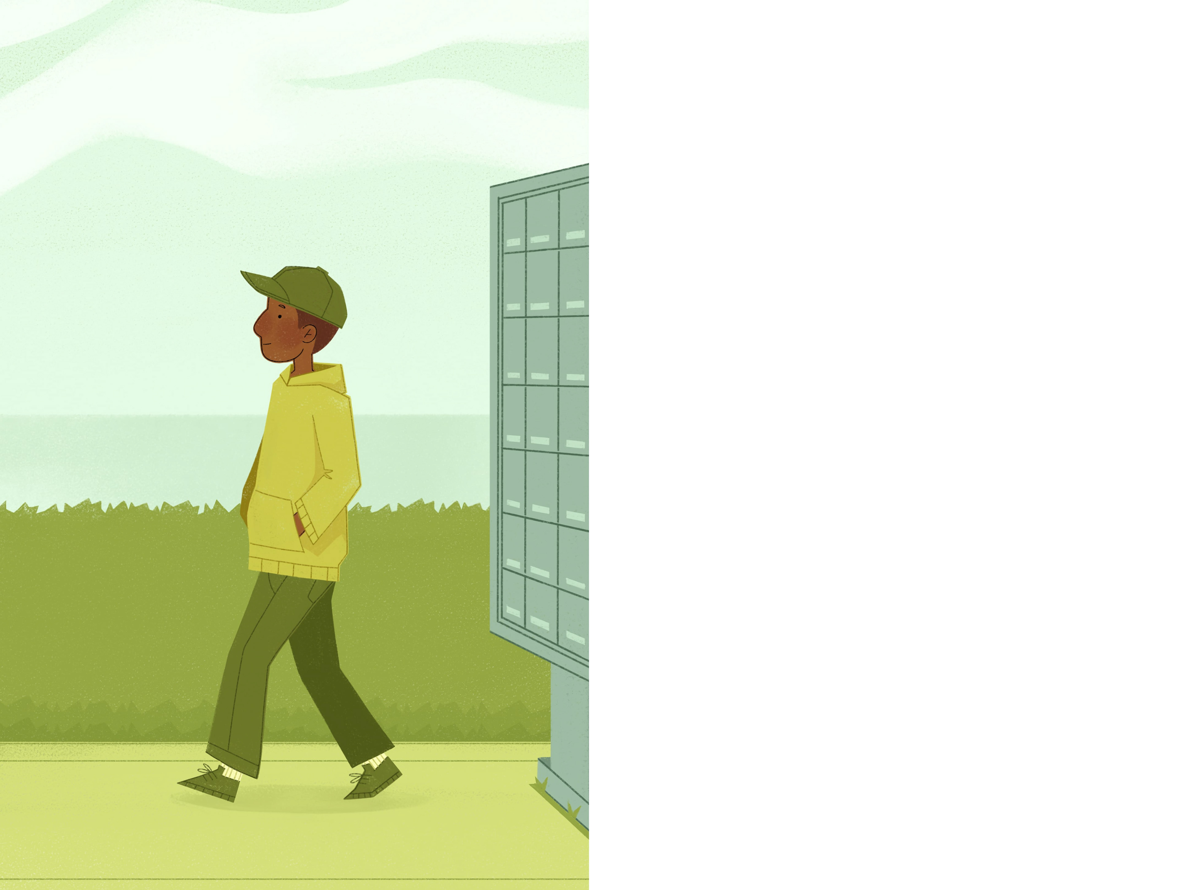 Without any words, embrace the unforgettable journey of a guy on a stroll to his neighborhood mailbox.